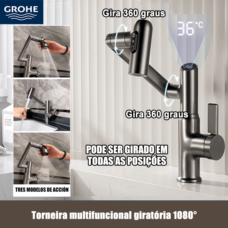Torneira poligonal multifuncional GROHE, adequada para banheiro e cozinha